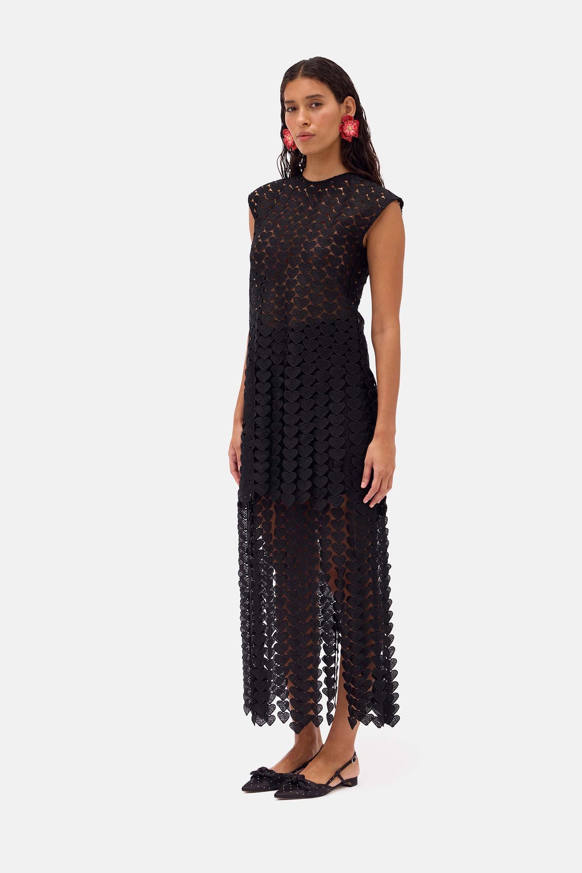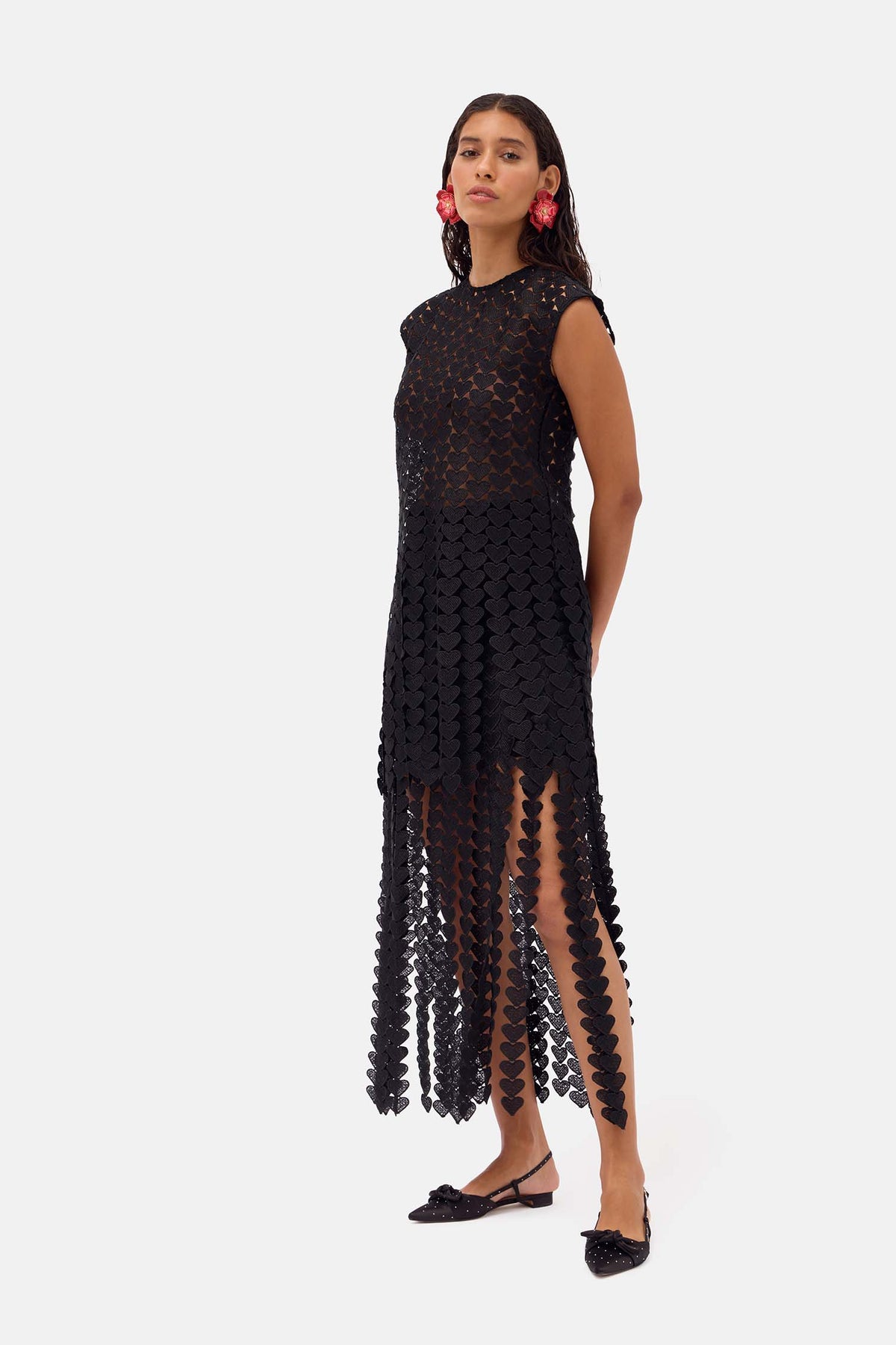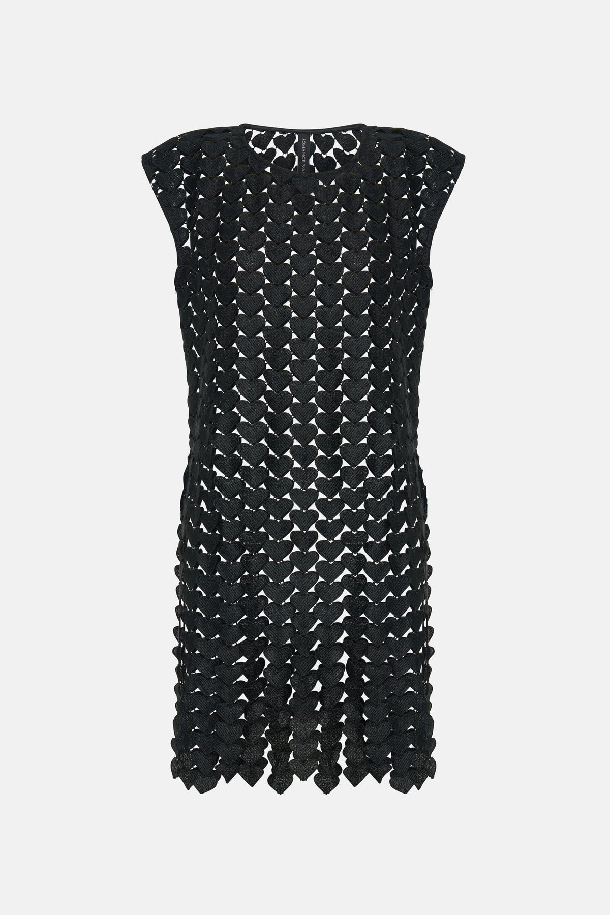 - enginered heart lace with hand cut fringed that frame the hem