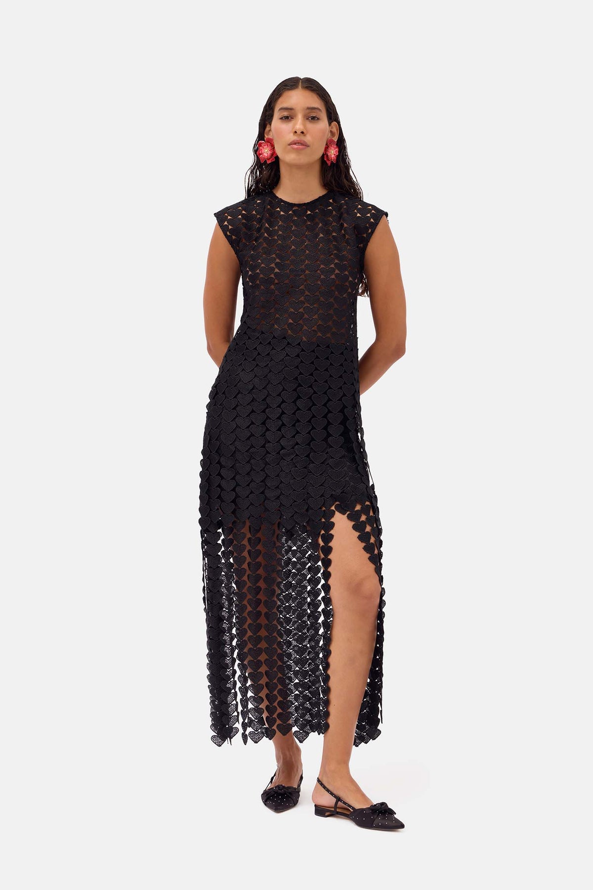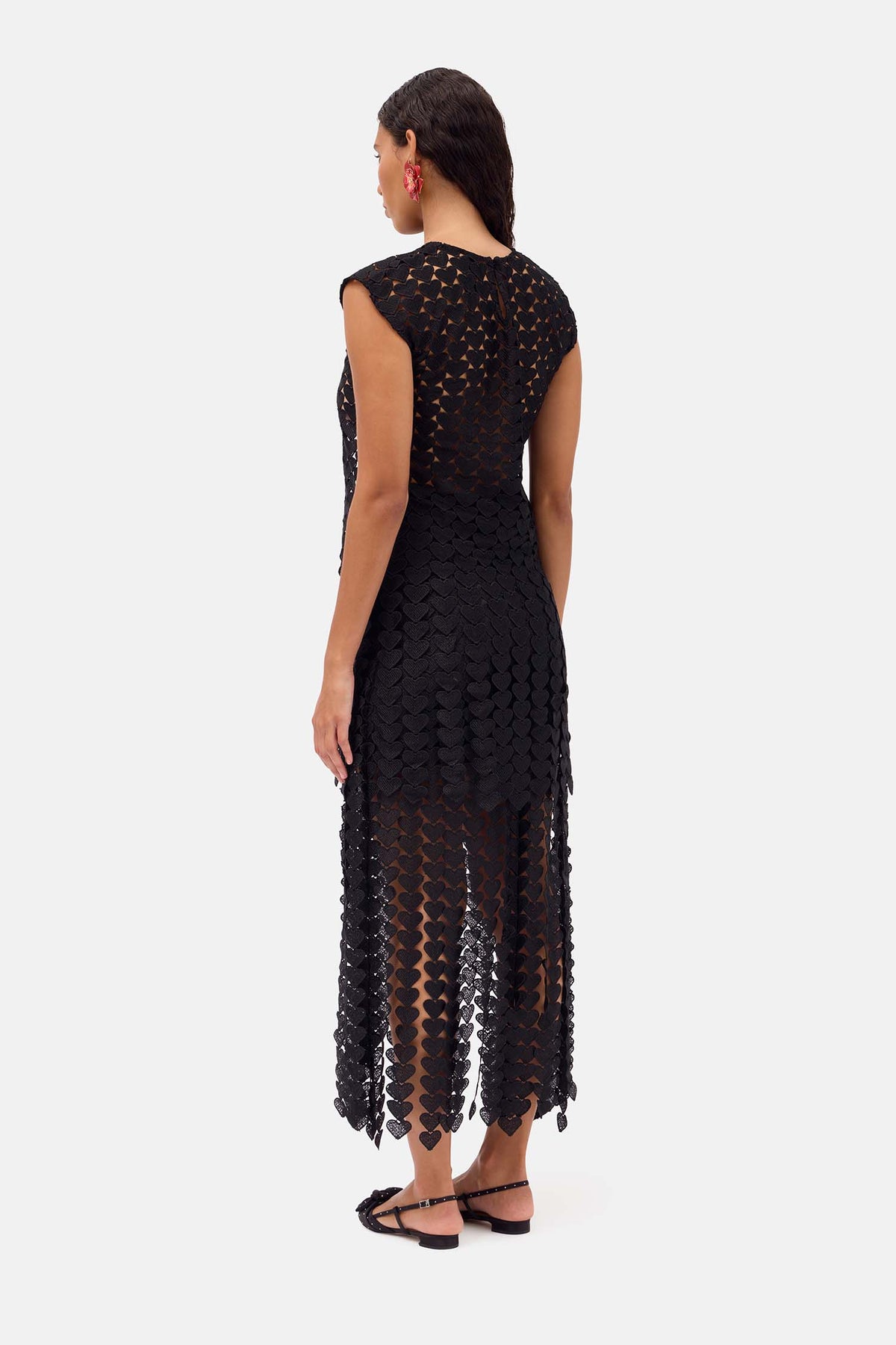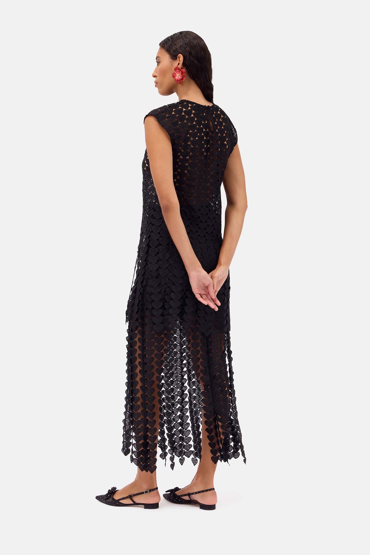 - enginered heart lace with hand cut fringed that frame the hem
