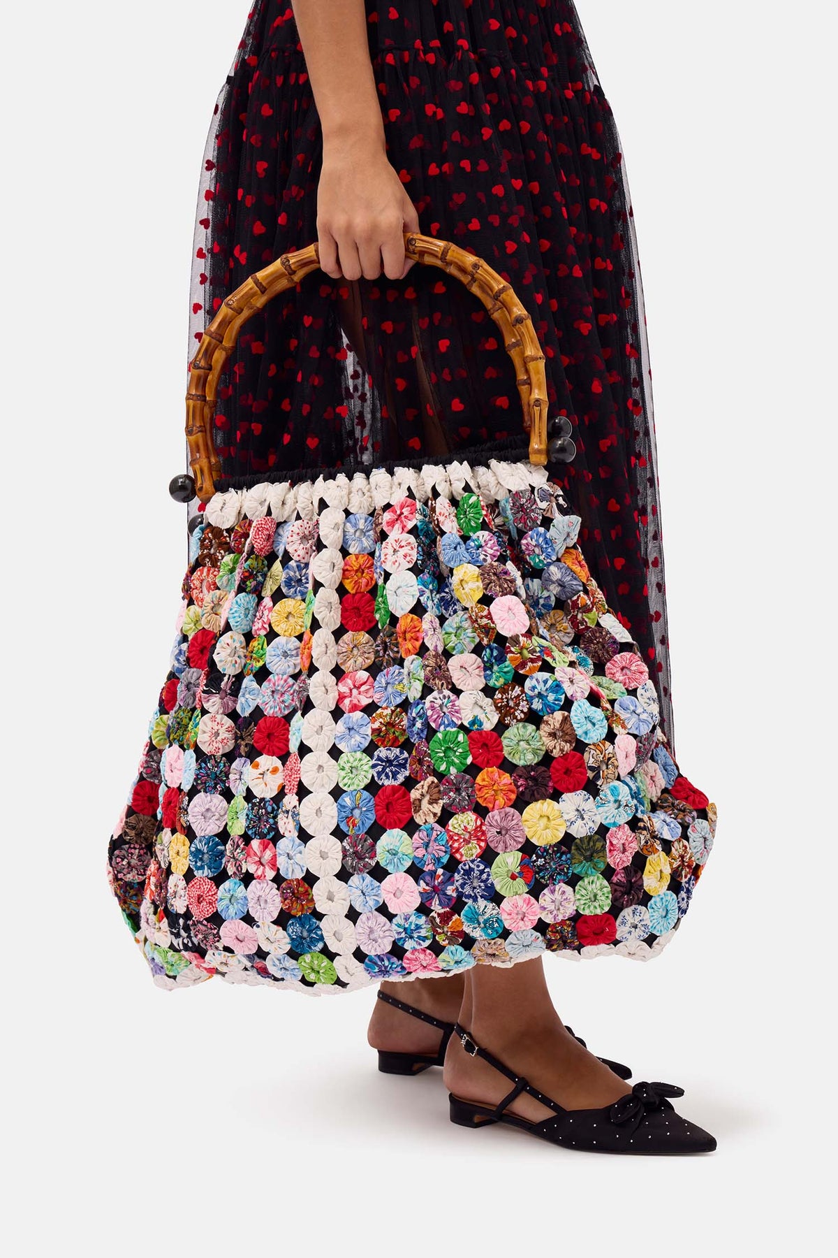 - crafted from a vintage yoyo embroidered quilt